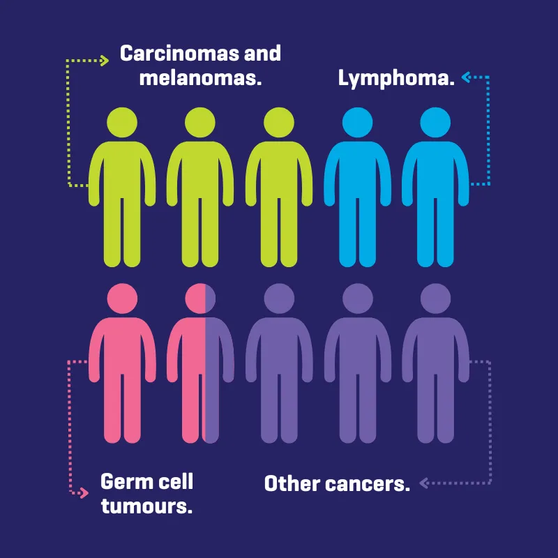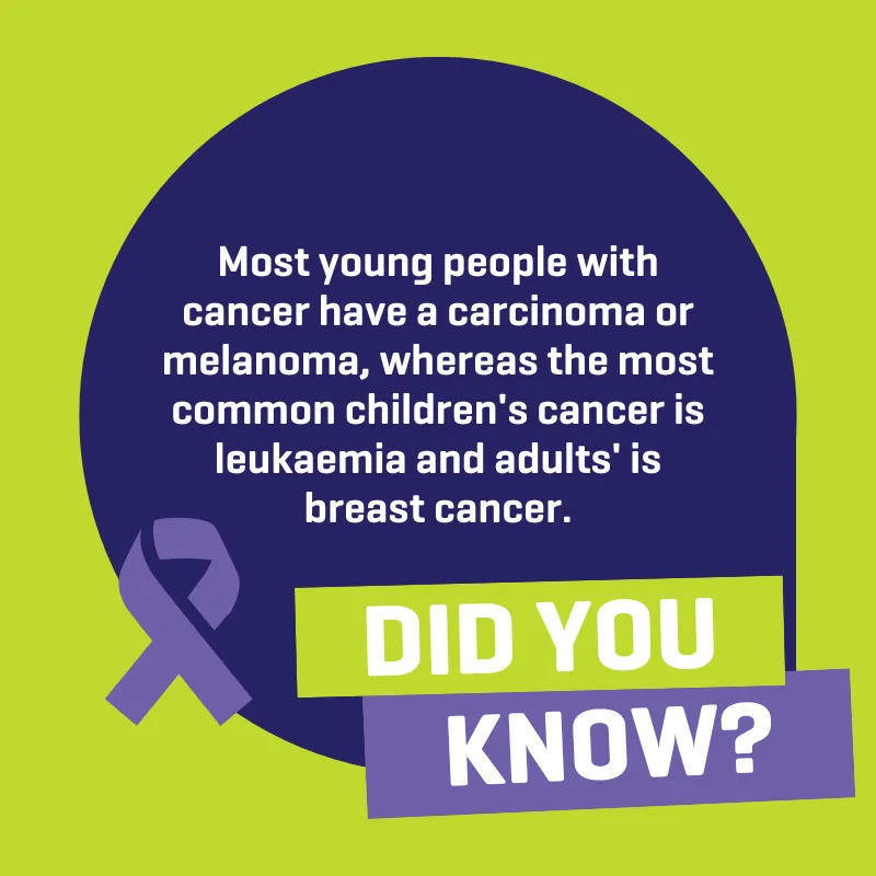 The most common cancers for teenagers and young adults can be different cancers to adults or children. Whilst some young people’s cancers are the same type as adults’, the amount of people with each cancer can be very different. For example, one of the most common types of cancer in young people is lymphoma – this cancer type barely scrapes into the top ten most common cancers in adults.