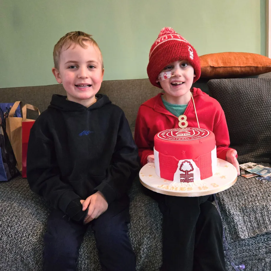 Up until a month before his diagnosis, James was a healthy and active child. Before he became unwell, he enjoyed playing football for a local team and practising kickboxing. As a passionate football fan, he has always supported Nottingham Forest, and we’re incredibly grateful to the club for their kindness and support.