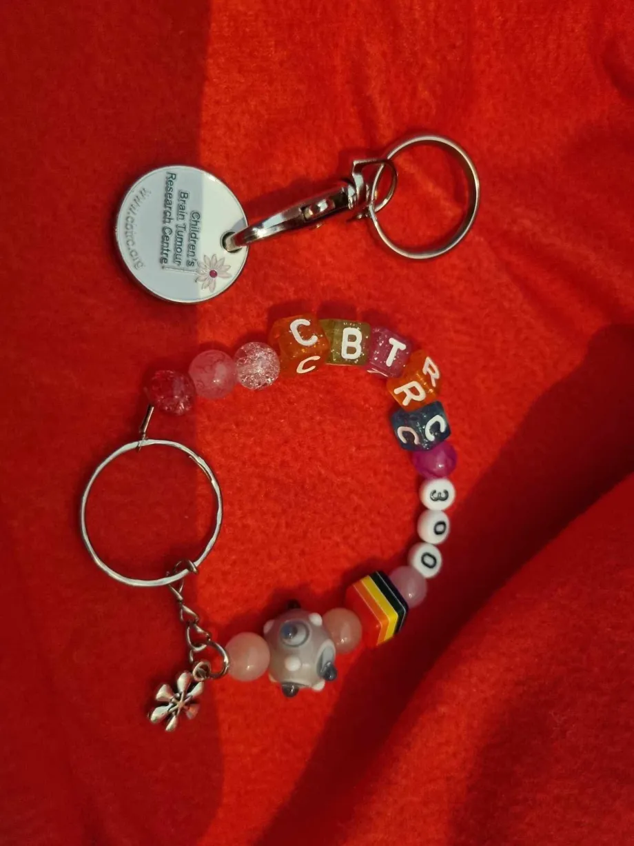 James's handmade personalised bracelet and keyring.