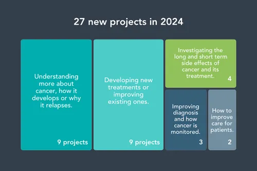 Since we started funding research in 2016, the CCLG Research Funding Network has funded over £30,000,000 of research! That has supported 209 research projects, over 100 of which are still active.