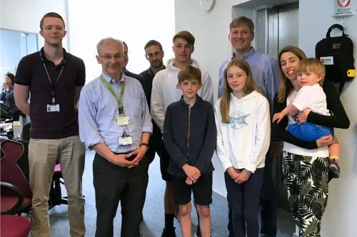 Dr Stefan Meyer and team with the Worboys family when they visited his lab in 2018.