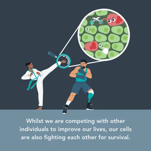 Natural selection has historically been about individuals who are fighting against each other, for survival or for mates. Until recently, researchers believed that cells in the body didn’t compete because they were all working towards the same goal of keeping you alive, and therefore couldn’t be evolving. But that’s not the case.