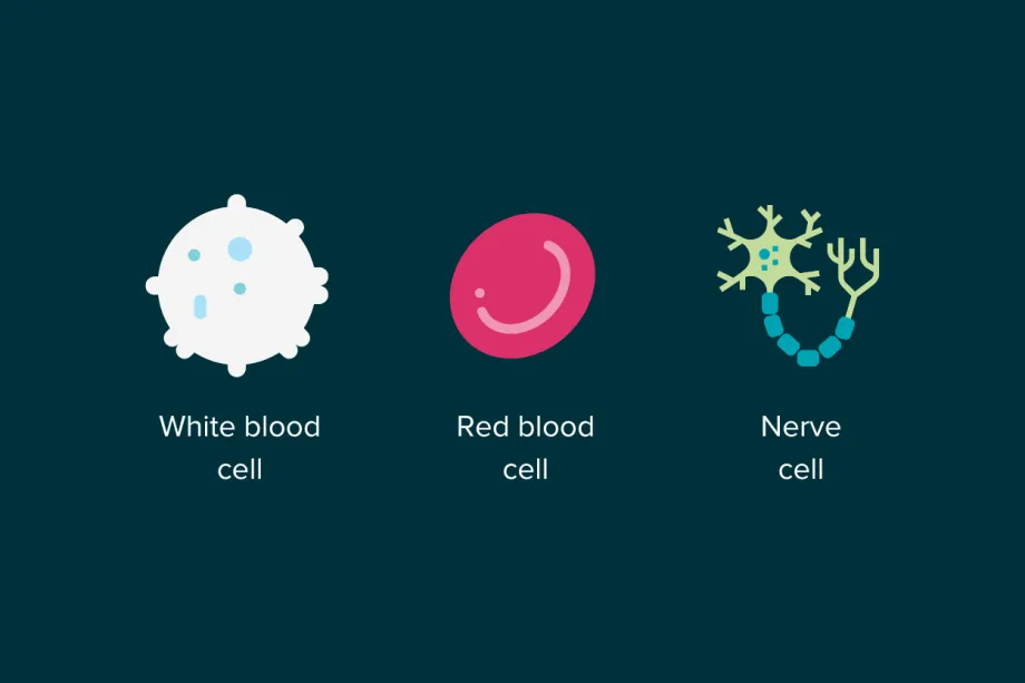 To understand how targeted therapies work, we first need to understand the difference between a healthy cell and a cancer cell. Our entire body is made up of cells, and each cell is specialised for a purpose. For example, red blood cells carry oxygen through our blood while nerve cells are part of our central nervous system and can transmit feelings of pain to our brain. These variations are controlled by a cell’s genetic code. This code acts like a set of instructions for a cell, telling it what job it must do, how often it should multiply, and much more.