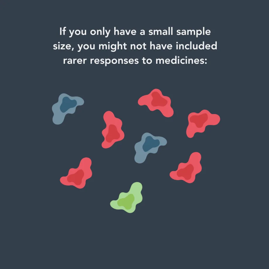 But if you had 200 samples, and only one didn’t respond to the medicine, you could be a lot more confident that you had found a useful medicine to treat children with cancer.