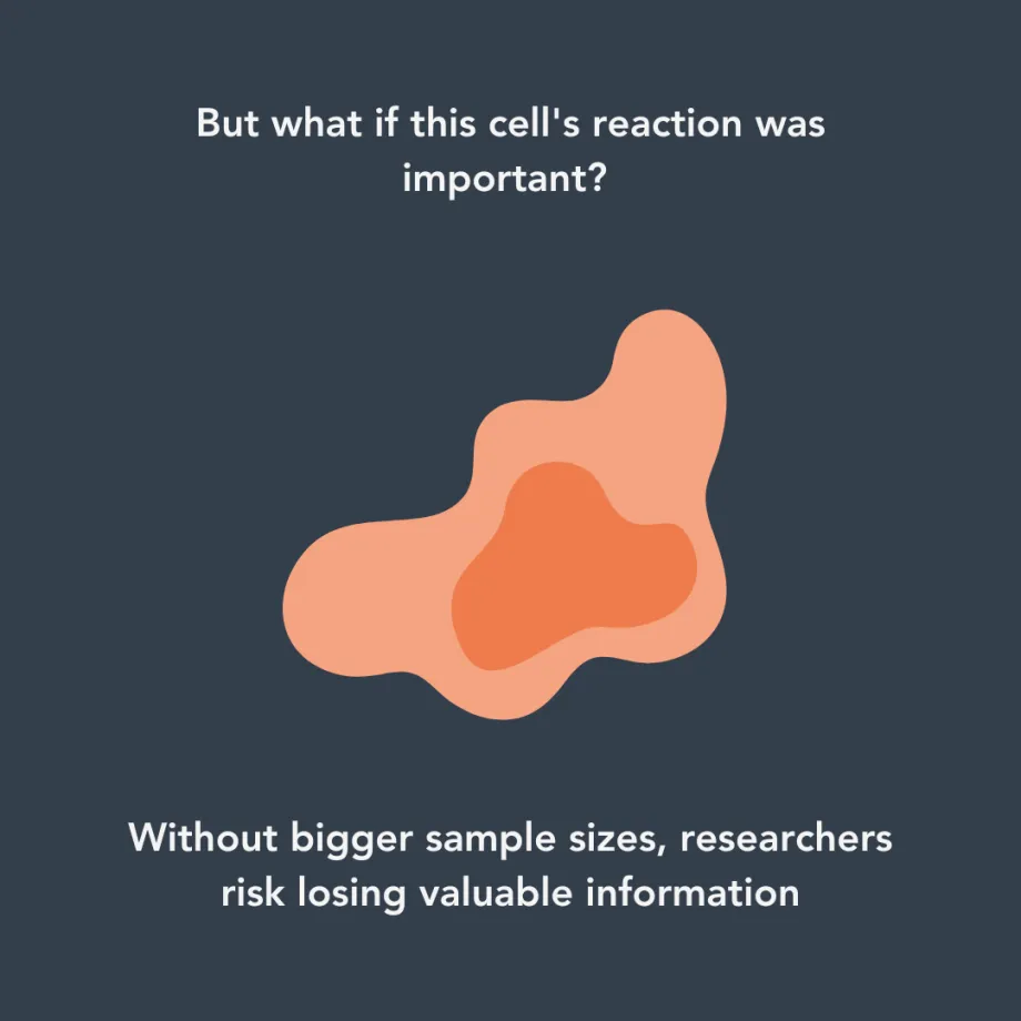 If you only take a small sample, you might capture all of the common responses, but you might miss a cell with a rare response to the medicine.